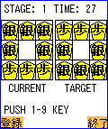 3×3のマスに配置された金、銀、歩の駒を動かして目的とする陣形に持っていくゲームです。